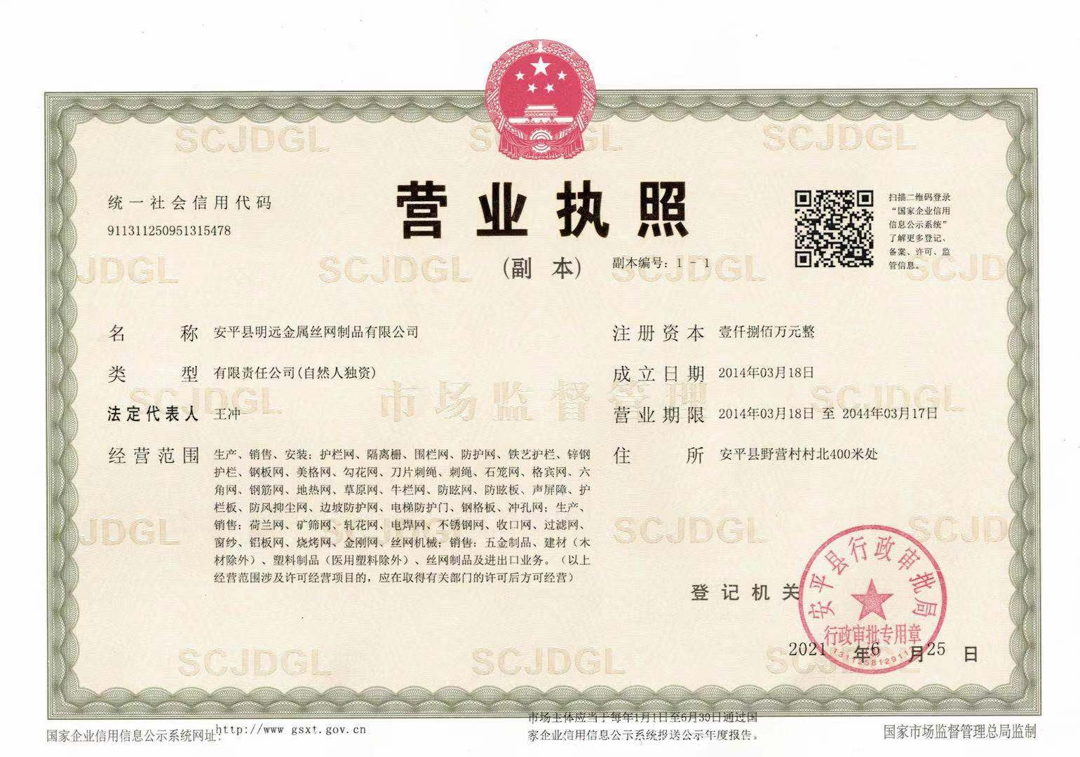 安平縣明遠(yuǎn)金屬絲網(wǎng)制品有限公司 - 座落于絲網(wǎng)產(chǎn)業(yè)基地河北安平,二十年絲網(wǎng)制作經(jīng)驗(yàn),是一家從拔絲、焊接、打砂、折彎、鍍鋅、噴塑、浸塑、為成品,生產(chǎn)研發(fā)安裝為一體的交通工程護(hù)欄網(wǎng)、光伏景區(qū)圍欄網(wǎng)專(zhuān)業(yè)型企業(yè)。明遠(yuǎn)公司擁有先進(jìn)的生產(chǎn)設(shè)備,全自動(dòng)浸塑、噴塑、鍍鋅生產(chǎn)線(xiàn),電腦焊網(wǎng)機(jī)組,聯(lián)合壓力機(jī),數(shù)控折彎?rùn)C(jī),槍尖沖孔機(jī)等多臺(tái)輔助設(shè)備,具有大批量生產(chǎn)能力。